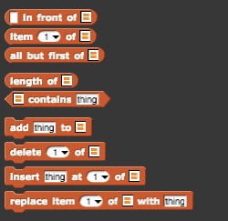 In this class we will learn how the List example from Class 1 was implemented. So, it turns out, we didn't really need to implement a List after all. That's because Snap! already comes with a special List variable.