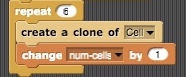 OK, so with each one of 6 repetitions we increment the value of variable num-cells by 1. But how the cells position themselves next to one another? Let's see what happens when a new