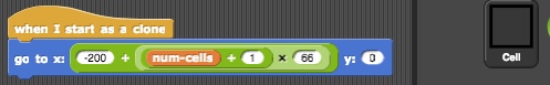 We see that with a little bit of math (see, math can be useful!), based on the value of the variable num-cells, we can position the new