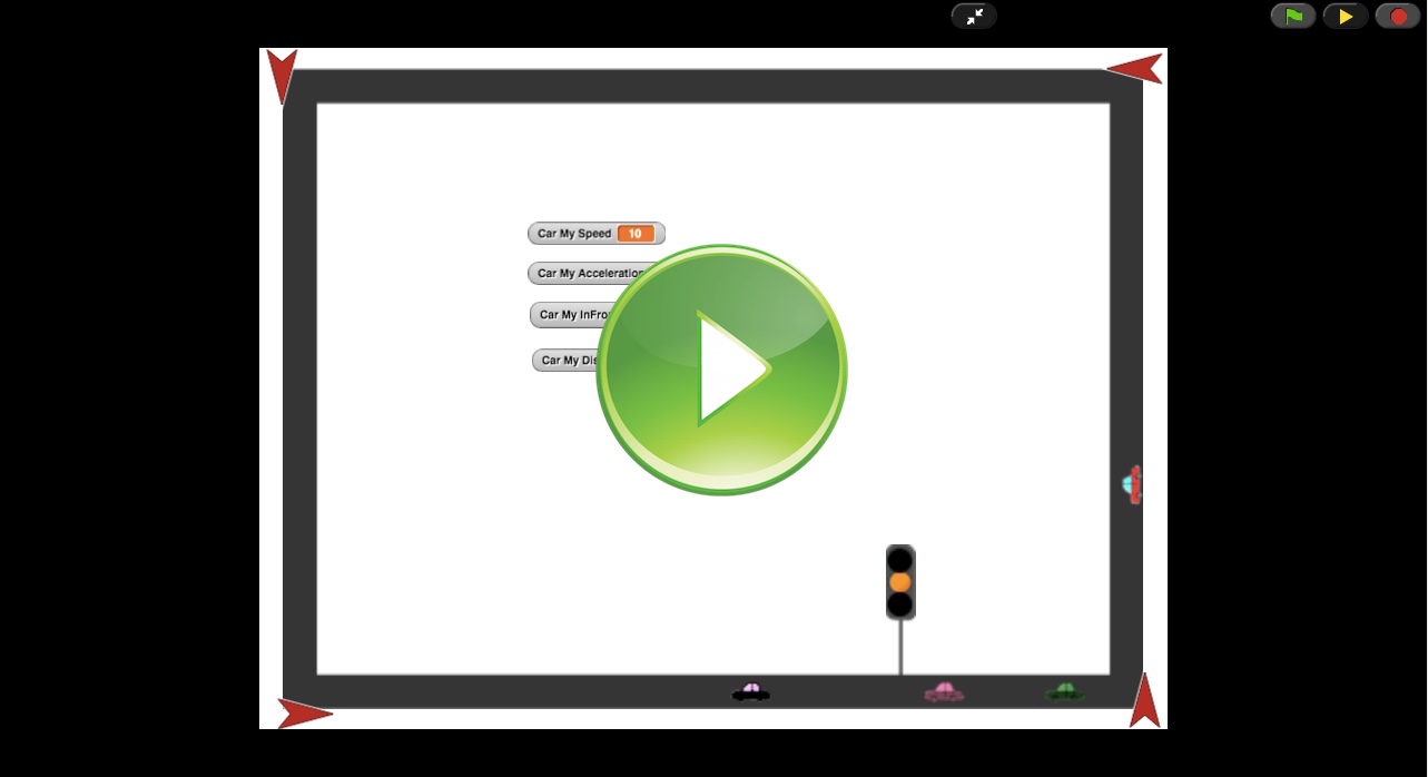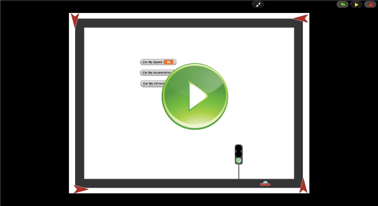 Now modify the program below to make the car slow down when too close to the car in front of it.