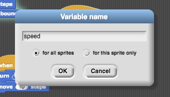 Remember how to make variables in Snap!? Remember when you make one it asks you whether it is for all or just this sprite? What is the difference?